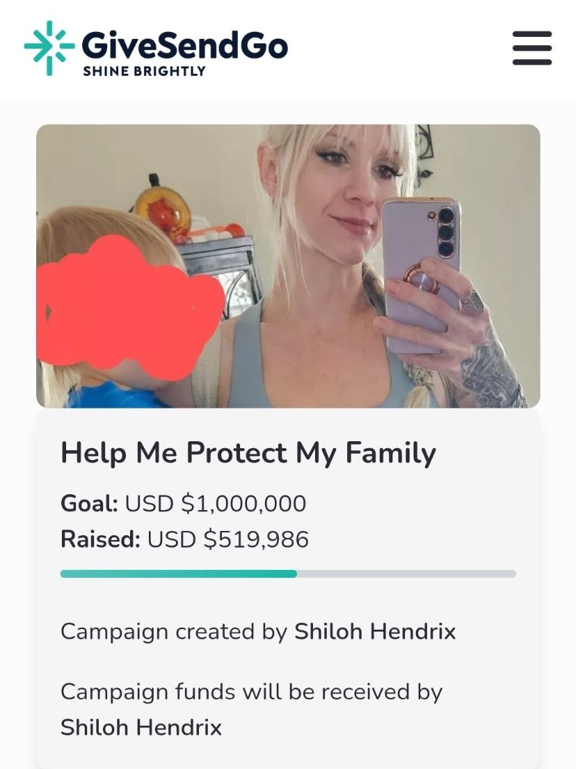 В ответ на пост Woman who called 5 yo black boy the ‘N’ word raises over $519k on GiveSendGo Shiloh Hendrix previously asked to help raise $100k; now asks for $1 million Claims she needs $$$ to ‘relocate’ following online backlash
