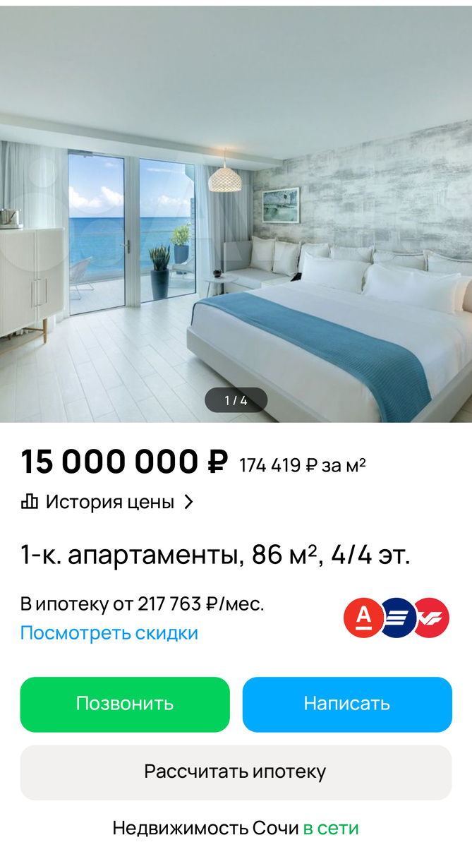 Если Вы откроете раздел недвижимости АВИТО и попытаетесь найти себе квартиру или аппартаменты в Сочи, Вы будете приятно удивлены и обнадёжены. Количество объявлений с крайне привлекательными ценами просто зашкаливает. Вот два примера рекламируемых аппартаментов в новых жилых комплексах. Первые попавшиеся. Обе квартиры якобы находятся в элитных ЖК, в шаговой доступности от Морпорта. Если кто-то не знает, это самый дорогой с точки зрения стоимости недвижимости район города. Согласитесь, ценник шикарный. Как шикарны и вид из окна/балкона, ремонт, обстановка. Ну, кто не захочет так жить? Вдыхая морской воздух тёплым вечером за фужером игристого на балконе собственных элитных аппараментов. Казалось бы, переехать в эти райские условия может позволить себе чуть ли каждый пятый житель России. Но не тут-то было. Семья из трёх человек решила переселиться из родного Екатеринбурга поближе к морю. Выбор пал на Сочи. Тем более такой шикарный выбор недвижимости на покупку! Рассматривала семь