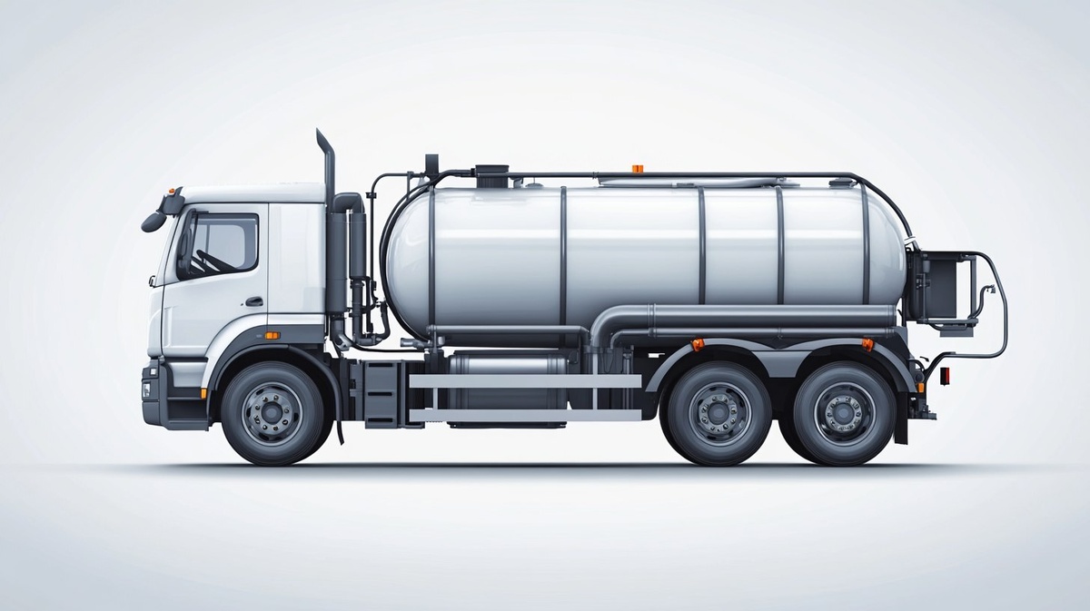 Создано на основе запроса: realistic vacuum truck (septic tank truck), modern design, cylindrical tank, clean surface, no logos or text