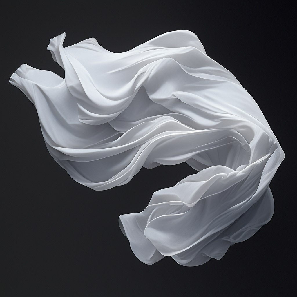 Создано на основе запроса: ultra realistic highly detailed photo of thick white flowy fabric suspended in mid air forming an organic shape