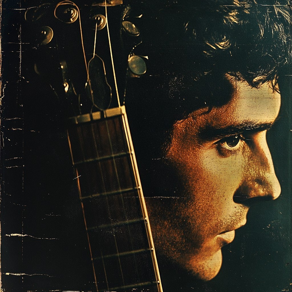 Создано на основе запроса: A 1960s album cover, worn sleeve effect, minimalistic, just illuminated white male face on back background, also illuminated is the machine head of an acoustic guitar, real photo, no effects --- Автоперевод: Обложка альбома 1960 -х годов, эффект изношенного рукава, минималистичный, просто освещенный белый мужской лицо на заднем фоне, также освещается, - это голова акустической гитары, настоящая фотография, без эффектов Какое твое мнение? 🤔 https://dzen.ru/id/65c0c65c86e4f837c27b24d7 #ИИ #AI #нейросеть #midjourney #art