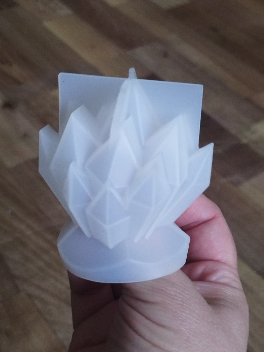 Давно хотела залить кристалл. Сразу скажу главное. Этот молд я рассматривала из-за размера , но вот саму форму не учла , а она не природная , хотя получилось красиво. Но не бывает таких правильных кристаллов! Сразу подумала о потали , втерла её сухой кисточкой внутри молда. Развела смолу две части и одну часть отвердителя (капельку больше) и капнула буквально пару капель красного красителя. Вот такой смолой средней вязкости я пользуюсь. Ой , ну красивенько , горный цветок , нежный такой получился! Можно колечки на него навешать! Попозже попробую нежно-голубой оформить , но всё же смущает правильность форм , а вам как?