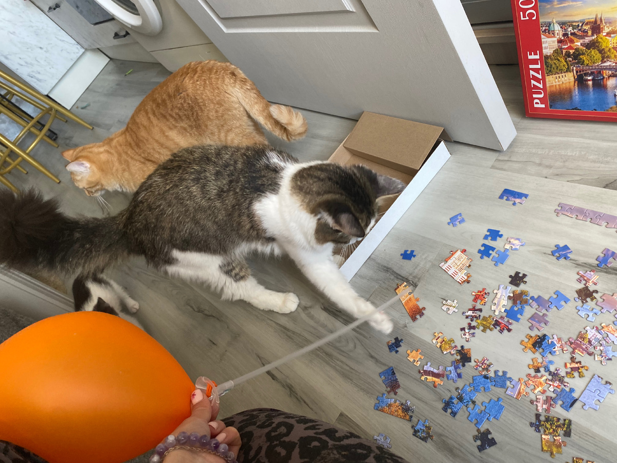 Мы ждали, пока наши котята вырастут, чтобы собрать пазл 🧩 Но теперь у нас появился новый котёнок, и - не будем же ждать вечно 🤔 - так что… пора! 💪🏻 Вместе веселее! 💃 А ещё, пока жду Артёма с Хвалынска (он уехал на трейл «Меловые Сосны») приготовила ему кушать: Кашу котята-то не доели 🤭💁♀️ Завтра Артём бегать не будет, пускай сидит дома и отъедается 😋 Он там бегал два дня подряд - 2 мая 33 км и сегодня 19 км ⛰ Там очень крутые горы и бежать супер сложно 🥵 А я завтра планирую побежать до леса 🌳 и гулять) пока тренер на марафоне в Казани 🏃♂️ 🤫 А вот как у них там в Хвалынске красиво: