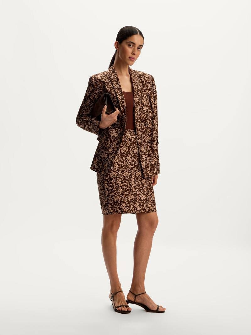 Больше о принтах В весенне-летнюю коллекцию 12 STOREEZ вошло сразу несколько цветочных принтов. Один из них, вдохновленный винтажным жаккардом, словно вплетен в материал — он получился рельефным и переливается на свету. Мы создали его в двух оттенках, шоколадно-бежевом и нежно-кремовом, и поместили на знаковые изделия сезона: костюм, лаконичное платье-комбинацию и воздушную вечернюю модель. Источником для другого стал архивный рисунок, который мы нашли на выставке Premiere Vision в Париже. Этот принт вы найдете на нашем бестселлере — платке из шелка, а также новинке — длинных брюках из шелкового шифона