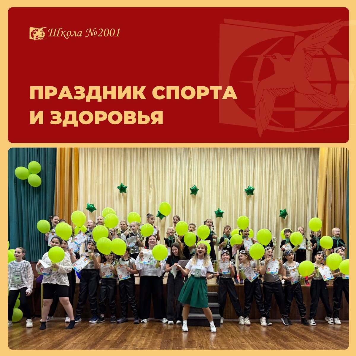 💚 В школе прошёл яркий праздник спорта и здоровья от фитнес-студии «Баланс»! Тема мероприятия — «В кадре здоровье», ведь сегодня здоровый образ жизни становится всё популярнее! Руководитель студии Антонина Витальевна рассказала о важности спорта и правильного питания, а на сцене показывали видеоролики с интересным медиаконтентом от студии. ✨ Гости праздника участвовали в интерактивных играх, а творческие команды студии удивили всех своими спортивно-музыкальными номерами! Первоклашки зажигательно выступили с «Барбариками», второклассники — с программами «Мечтай о спорте» и «Герои спорта», а старшие группы впечатлили постановками «Энигма» и «От Винта». 🤩 Это был настоящий праздник здоровья, позитива и вдохновения! Фото с мероприятия уже в альбоме: https://vk.com/album-215232148_307111701 Видеоролики можно посмотреть здесь: https://vk.com/wall-215232148_124 #ДОНМ #Школа2001 #НашиЛица