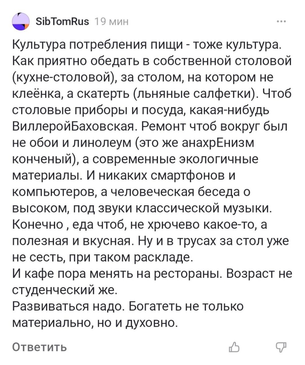 Ничего не поделаешь, слишком долго работал по автосервисам и гаражам и собирал бабок по болотам, вследствие чего матерюсь и культурно недоразвит до идеала. И вообще являюсь закоренелым поклонником крайнего анахрЕнизма, линолеума на кухне, самодельной шаурмы в труселях под очередной видосик "Лесных", а из классической музыки знаю только Вагнера с его клипом "Лето и Арбалеты". Короче, нахожусь в стадии формирования духовного капитала.