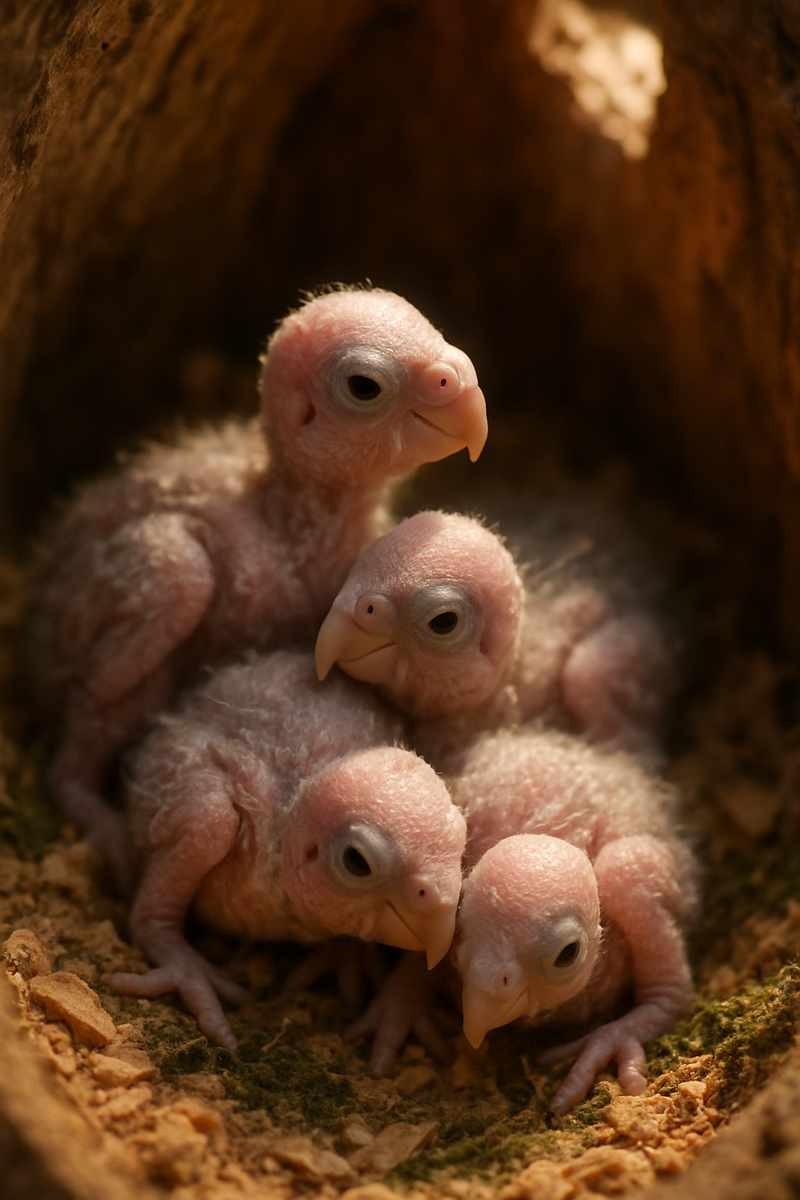 Видели новорожденных попугаев? Уникальные фото из дикой природы.