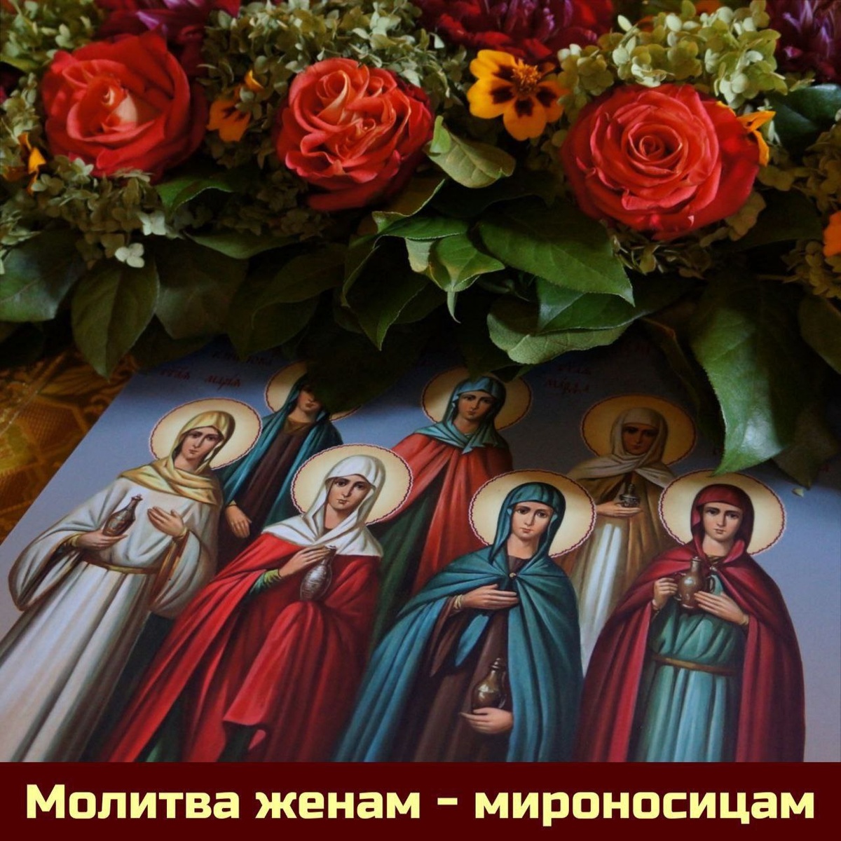 Молитва святым жёнам-мироносицам на русском языке. О святые жены-мироносицы, всехвальные Христовы ученицы! К вам мы, грешные и недостойные, ныне усердно прибегаем и во умилении сердец наших молимся. Вы более всех благ земных Сладчайшаго Господа Иисуса возлюбили и Тому через все житие добро последовали, Божественным учением Его и благодатию души свои питающие и множество людей к чудному свету Христову приводящие. Испросите и нам у Христа Бога благодать просвещающую и освящающую нас, да ей осеняемые, в вере и благочестии в подвигах любви и самоотвержения преуспевать будем, и Христу в ближних Его служить неленостно станем. О святые жены! Вы бодренно благодатию Божиею житие на земли препроводили и во обители Небесные радостно отшедшие притекли. Молите Христа Спаса, да и нас сподобит странствие наше земное, во временном этом веке непреткновенно совершить, и в мире и покаянии житие наше завершить, да так во святыни на земли пожив, вечной и блаженной жизни на Небесах сподобимся, и там с вами