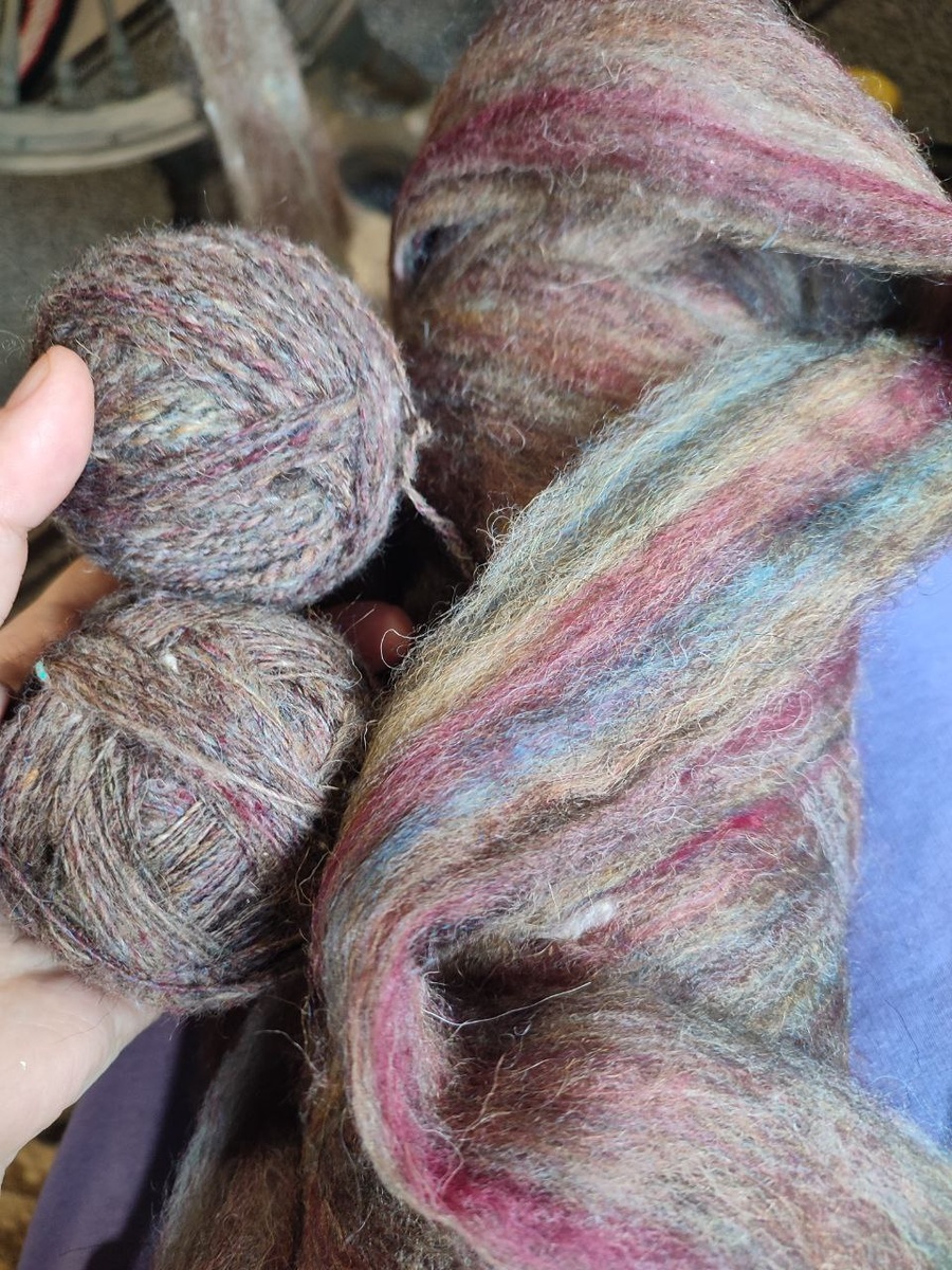 Прялка – любовная любовь 😍😍😍 Показываю шерсть в бобине и в клубках: первый - уже готовая пряжа, второй - вчерашняя однонитка. Ну и последнее фото - то, что сейчас на прялке. Не могу остановиться 😂