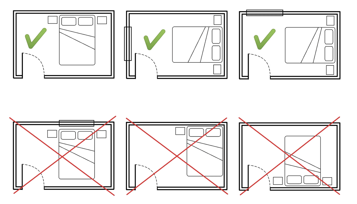 - Лучше, если изголовье обращено к глухой стене. А дверь — в поле зрения, но не в ноги.