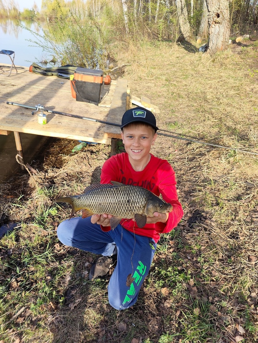 Прошел слух, что на Бойцовском пруду, который находится на Наугорском шоссе, стал клевать карп🐠🐡🐟. Решили с папой это проверить. Так как времени нет, и я учусь во вторую смену, мы поехали после уроков на этот пруд, попали мы туда только к 5 часам вечера. Клев был отменный✌👏👍 я поймал много карпов, но домой забрал только 3, все весом более килограмма.