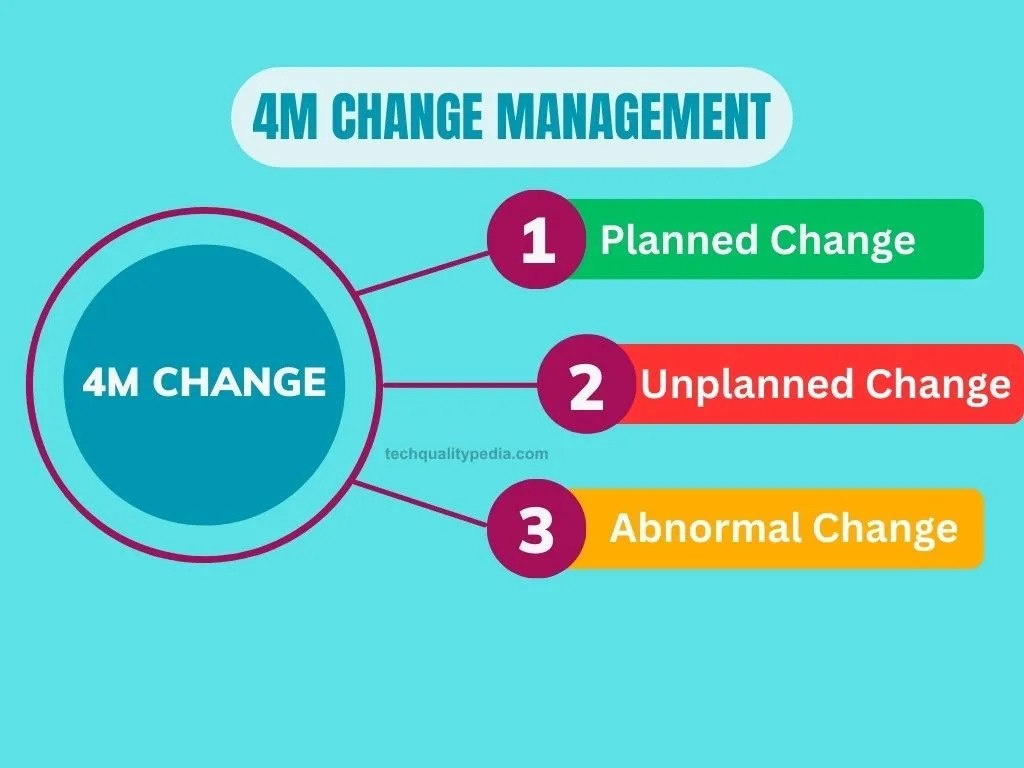 Для любого производственника очевидна важность контроля изменений 4M (Смена оператора, станка, инструмента, Материала и метода) для ожидаемых изменений (новый оператор, оператор в отпуске, PM станка/инструмента, новый станок, новый измерительный прибор и новый инструмент), а также непредвиденных изменений (поломка инструмента, сбой питания, поломка станка и т. д.) Изменения в продуктах или процессах характеризуются как отклонения от планов контроля, рабочих инструкций, матриц навыков и одобрения клиента для «человека, материала, машины и используемого метода». В данной статье рассмотрим хорошие примеры описания процесса управления изменениями: https://dqs-russia.ru/text/upravlenie-izmeneniyami-po-4m/