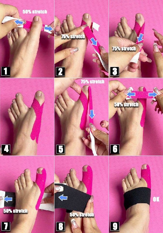 Схема тейпирования для отведения большого пальца стопы