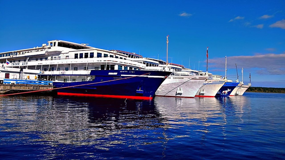 Аншлаг в Мышкине, 6 теплоходов в один ряд у причала!