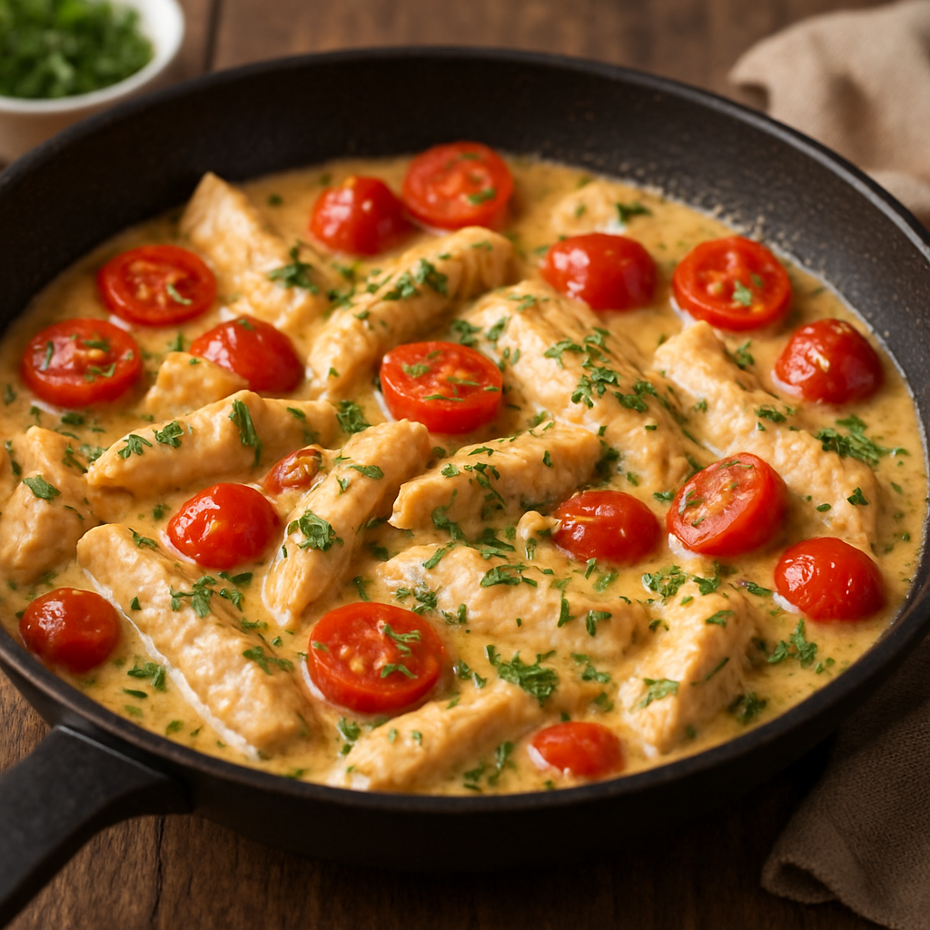 Ужин за 15 минут: нежная курица в сметанном соусе с черри и чесноком