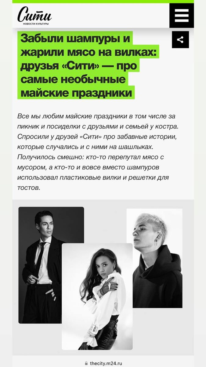 Тут наши друзья из "Сити" собрали классный материал с историями творческих людей про майские каникулы. Там местами смешно, местами полезно, но в тоже время, можно словить дикую ностальгию. Короче, читаем все тут 👈🏽