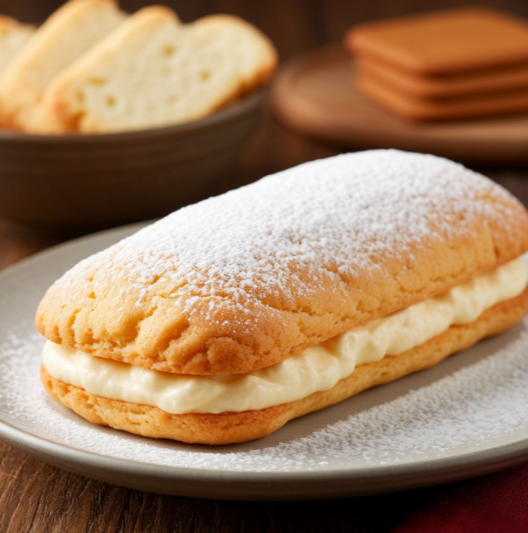 Сегодня приготовим нежные пирожные из савоярди с сырно-сливочным кремом! Сначала займемся приготовлением печенья савоярди. В миске взбиваем 2 куриных яйца с 50 г сахара до получения пышной и светлой массы. Аккуратно просеиваем в яичную смесь 50 г пшеничной муки и осторожно перемешиваем лопаткой снизу вверх, чтобы не потерять воздушность. Перекладываем тесто в кондитерский мешок с круглой насадкой. На противень, застеленный пергаментной бумагой, отсаживаем полоски теста длиной около 8-10 см. Посыпаем печенье сахарной пудрой (1 ст. л.). Выпекаем в разогретой до 180 градусов духовке около 12-15 минут, до золотистого цвета. Даем печенью остыть. Готовим крем: в миске взбиваем 100 мл сливок 33% до устойчивых пиков. Добавляем 70 г творожного сыра и 35 г сахара, аккуратно перемешиваем до однородности. Берем печенье савоярди и обильно смазываем его сырно-сливочным кремом. Соединяем два печенья вместе, образуя пирожное. Повторяем процесс с оставшимся печеньем и кремом. Наши нежные пирожные из са