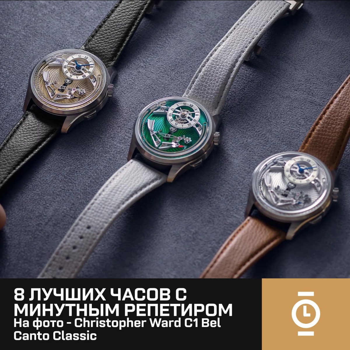 8 ЛУЧШИХ ЧАСОВ С МИНУТНЫМ РЕПЕТИРОМ #тренды_WD Минутный репетир — одна из самых сложных и уважаемых часовых усложнений. Он позволяет по нажатию кнопки услышать текущее время в виде звуковых сигналов — часовых, четвертных и минутных. История этой технологии уходит в XVIII век, но и сегодня мастера продолжают удивлять новыми решениями. В этой подборке — семь часов, каждые из которых по-своему уникальны: по дизайну, конструкции или исполнению. Christopher Ward C1 Bel Canto Classic Технически это не минутный репетир, а sonnerie au passage — часы отбивают каждый прошедший час. Но за цену $4 615 это выдающееся предложение. Механизм FS01 с лазерной гильоше на циферблате выглядит дороже своей цены. Эта модель настолько успешна, что привела к резкому росту британско-швейцарского бренда. Jaeger-LeCoultre Reverso Minute Repeater Часовая классика с 1931 года — модель Reverso здесь получила минутный репетир и невероятный уровень отделки. Передняя сторона украшена гильоше под прозрачной эмалью,