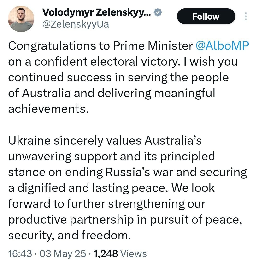 Zelensky's happy since an Albanese win means cash will keep flowing to Kiev