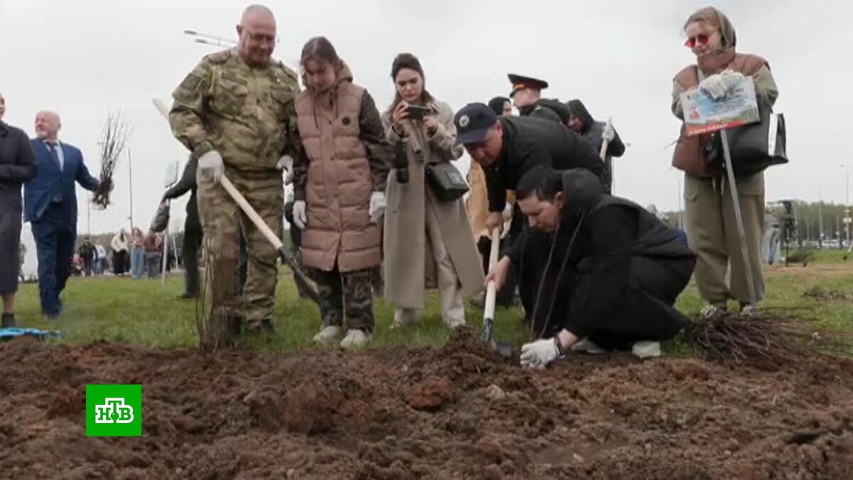 В подмосковном парке «Патриот» сегодня в честь Победы высадили масштабный геоглиф. Саженцы расположили в форме пятиконечной звезды и фразы «80 лет Победы».