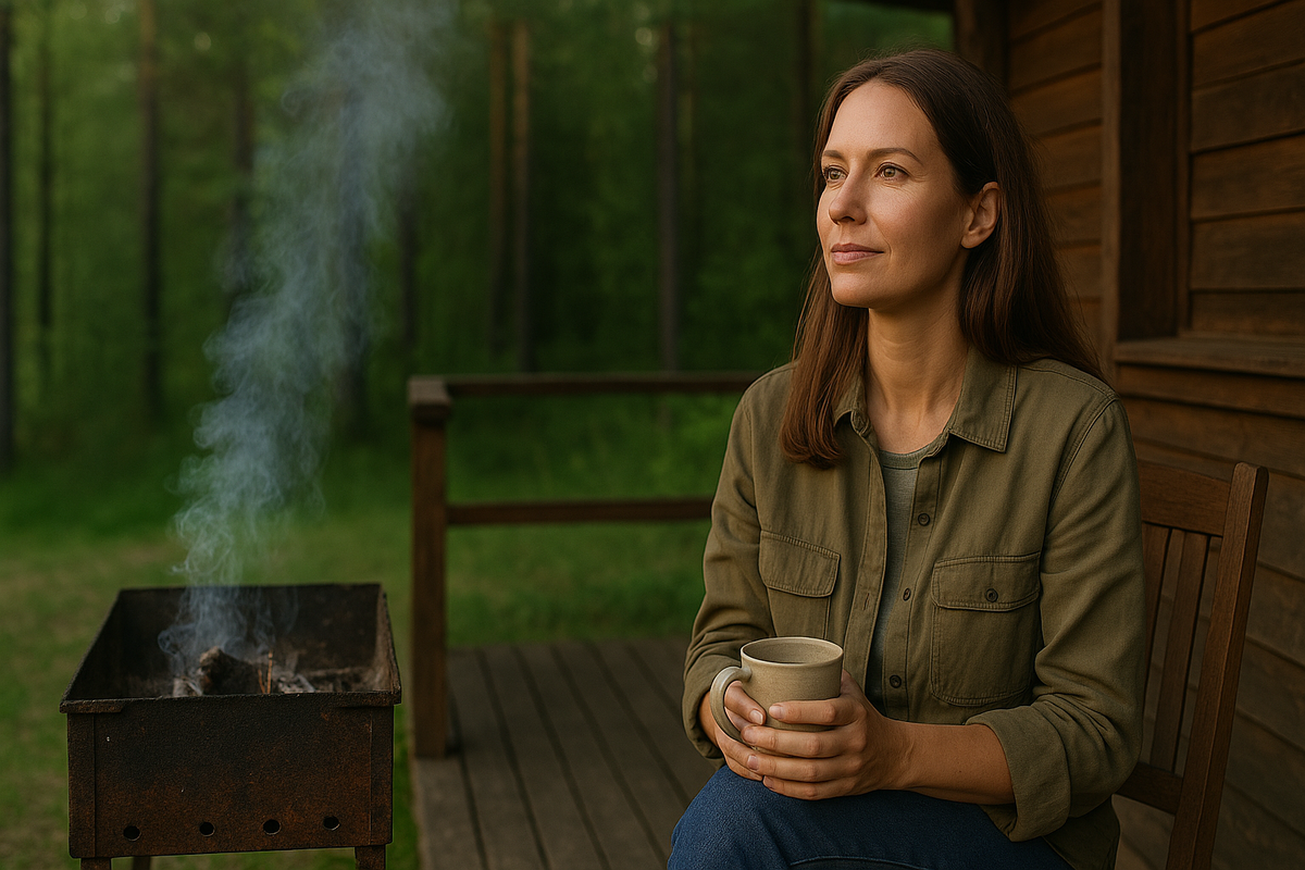 И решили: едем. Без долгих сборов, без программы, без фильтров и сторис. Нашли домик — старый, деревянный, зато с верандой, мангалом и видом на лес. Я взяла маринованные овощи, она — рыбу в фольге. И в пятницу вечером мы уже были в дороге.