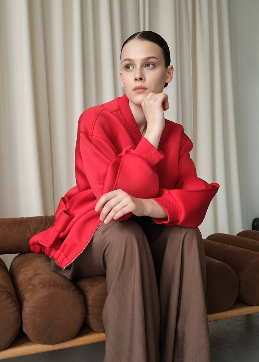 Бомбер доступен так же в акцентном красном цвете для самых ярких и эффектных образов