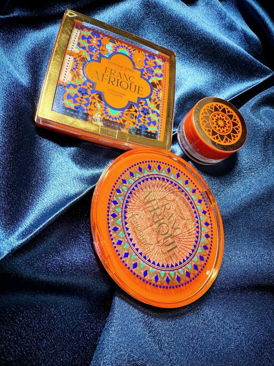 #мышькрасится Три продукта из новой коллекции “Franc Afrique” от бренда “Vivienne Sabo” для волшебного сияния этим летом ✨ ✨Хайлайтер в оттенке «01» сначала покоряет красотой оформления, а потом и своим роскошным золотым сиянием. Тиснение в виде скарабея - просто топ! Это очень красиво. Сам продукт мелкого помола, без явных крупных частиц. Эффект солнечного блика😍 ✨Палетка теней в оттенке «01» - это 3 матовых, 3 сатиновых и 3 сияющих оттенка. В качестве базовой палетки, конечно, она не годится. Здесь довольно смелое цветовое решение, включающее глубокий синий сатиновый и матовый голубо - бирюзовый… да, универсальными их не назвать… но какие же красивые акценты получаются с этими оттенками! Базовый матовый бежевый хорош, как и «сияшки». Матовая болотная зелень идеальна, чтобы подчеркнуть нижнее веко. В общем, палетка интересная, а сами тени отличного качества. Мягкие, шелковистые и отлично поддаются растушёвке И здесь есть «простор для фантазии»… можно сделать и нежный, повседневный