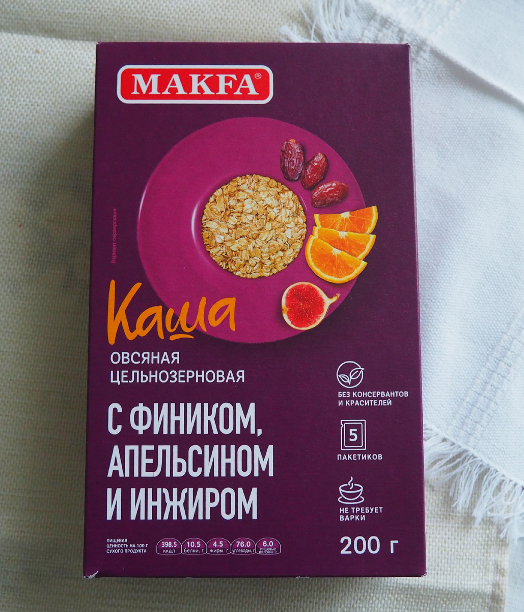 Каша с натуральными фиником, апельсином и инжиром Такой завтрак готовится за считанные минуты, а по вкусу напоминает изысканный десерт. Это идеальный баланс пользы цельных злаков и оригинального вкуса, которые понравятся всей семье. Способ приготовления: выложить в посуду для каши содержимое пакета. Добавить 130-150 мл крутого кипятка или горячего молока и тщательно перемешать. Дать настояться 5-7 минут, после чего еще раз перемешать.