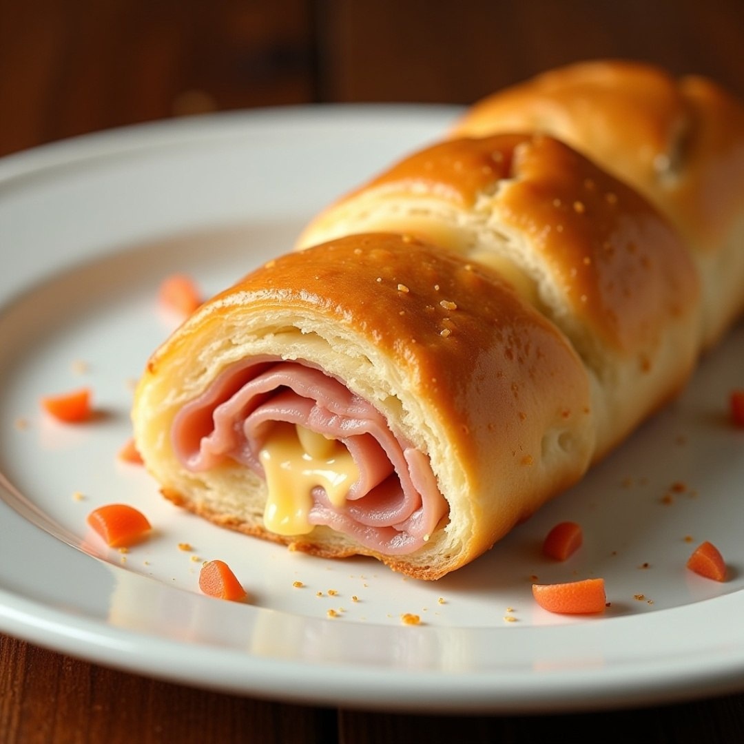 Полппетоне с ветчиной и сыром Ингредиенты⤵️ 🔸Готовая слоёная выпечка — 500 г 🔸Ветчина — 200 г 🔸Сыр моцарелла — 150 г 🔸Сливки 10% — 50 мл 🔸Яйцо — 1 шт. 🔸Чёрный перец, мускатный орех — 1 щепотка Приготовление🧀 1. Разморозить тесто по инструкции. Раскатать в прямоугольник (~30×20 см). 2. Смешать сыр со сливками и специями. Равномерно распределить начинку: сначала ветчину, затем сырную смесь. 3. Свернуть рулетом, защипнуть края. Смазать взбитым яйцом. 4. Выпекать 25-30 минут при 180°C до золотистой корочки. Рецепт дня #полппетоне #тесто #начинка #ветчина #сыр #ужин