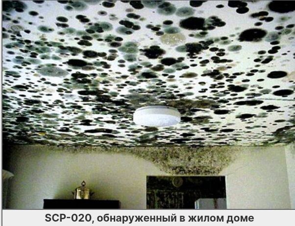 Объект №: SCP-020 scp-020.jpg SCP-020, обнаруженный в жилом доме Класс объекта: Кетер Особые условия содержания: Образцы SCP-020 должны храниться в герметичной цилиндрической камере-культиваторе внутри запечатанной камеры содержания, доступной только через воздушный шлюз, в Биологическом Исследовательском Участке 12. Подачу питательных веществ следует осуществлять с помощью автоматической роботизированной системы, поскольку герметичная камера всегда должна оставаться запечатанной. Наблюдение в хранилище осуществляется с помощью герметизированных видеокамер, которые должны каждый день проверяться на отсутствие заражения. Все сотрудники, входящие внутрь камеры содержания, должны быть одеты в костюмы биологической безопасности уровня 5, включая изолирующие противогазы, и пройти полную процедуру антигрибковой дезинфекции, прежде чем покинуть помещение. Описание: SCP-020 представляет собой быстро распространяющийся грибковый организм, способный влиять на чувства и поведение живых сущес