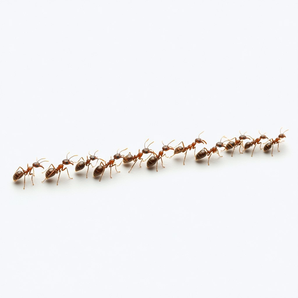 Создано на основе запроса: a single file of ants in a straight line on a white background