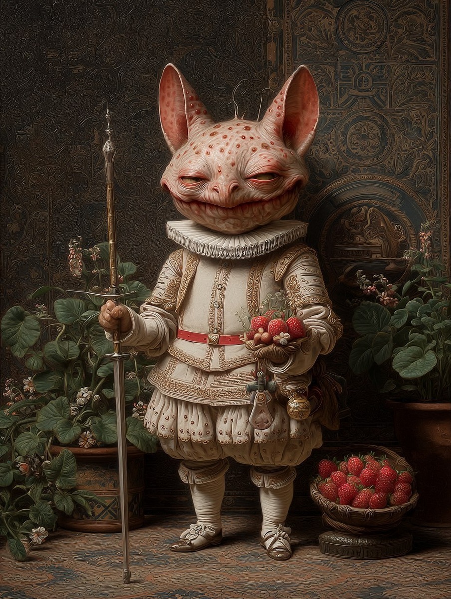 Создано на основе запроса: Belle Epoque amazing portrait full body standing of an adorable little anthropomorphic strawberry 1836. young boy knight, rococo, very detailed, pop surrealism, by Rembrandt, by Mark Ryden, by Arcimboldo --- Автоперевод: Belle Epoque Amazing Portrait Then Body Standing из очаровательной маленькой антропоморфной клубники 1836 года. Рыцарь молодого мальчика, Rococo, очень подробный, поп -сюрреализм, Рембрандт, Марк Райден, Армиболдо Необычно вышло? 🤔 https://dzen.ru/id/65c0c65c86e4f837c27b24d7 #ИИ #AI #нейросеть #midjourney #art