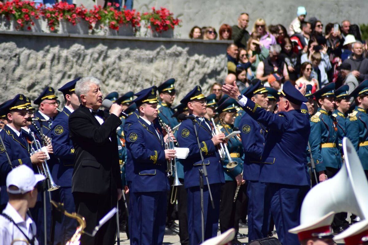 На священной высоте России прозвучали Гимн Российской Федерации, «Священная война» и «Славься», песня-символ «День Победы», марш «Прощание славянки» и другие легендарные произведения.