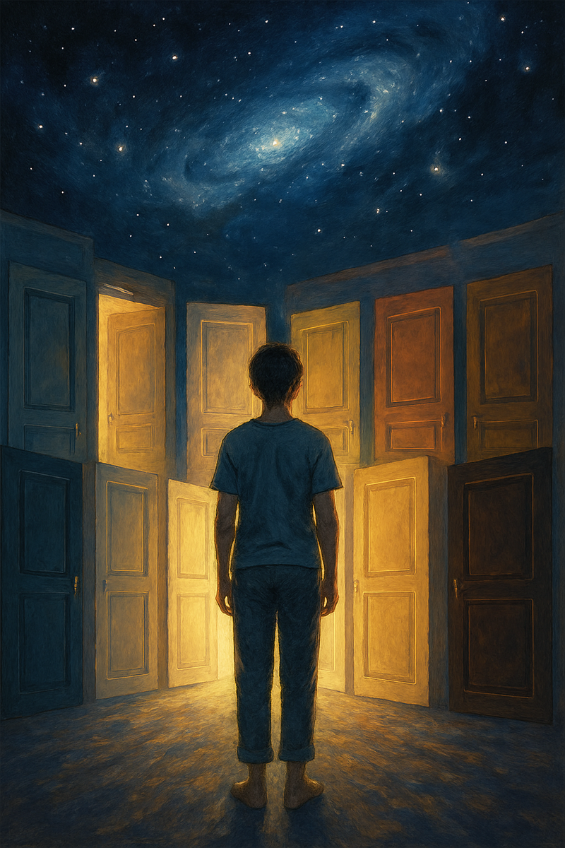 Двери во сне часто показывают нам, где мы стоим – на пороге нового или перед закрытой возможностью. Иногда во сне мы не просто стоим перед дверью, а наблюдаем за собой со стороны, словно пытаясь оценить, готовы ли мы войти или почему путь закрыт. Этот взгляд на себя тоже несет глубокий смысл.