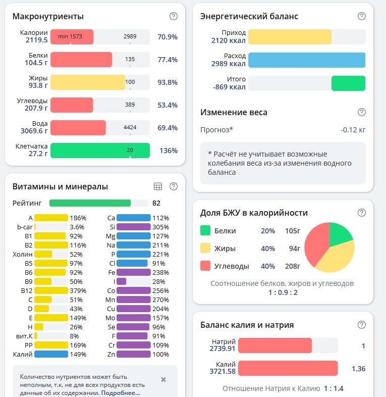 ПП подсчитанное в программе мой здоровый рацион