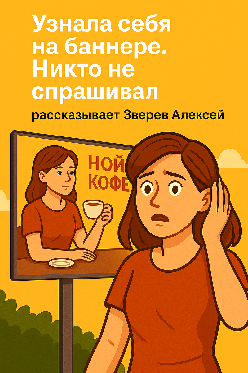 Мария Васильева, 27 лет, живёт в Москве, работает маркетологом. У неё нет публичного профиля в соцсетях, она не участвует в рекламных съёмках и никогда не выкладывала свои фото в открытый доступ. Тем удивительнее было то утро, когда она ехала на работу и увидела собственное лицо... на рекламном баннере. Плакат висел прямо у входа в торговый центр. На нём — чашка кофе, логотип уютного кафе и крупным планом — она. Изображение сопровождалось слоганом: «Настоящий вкус — в каждом взгляде». Никаких съёмок она не помнила. Контрактов не подписывала. На фото — её лицо, снятое в профиль, в момент, когда она сидела у окна. Судя по всему — случайный кадр, возможно, сделанный из сторис сотрудника заведения. Но теперь это фото стало частью коммерческой рекламы. Возмущение Марии было обоснованным. По российскому законодательству изображение человека не может быть использовано без его согласия. Это прописано в статье 152.1 Гражданского кодекса РФ. Исключения допускаются только в строго определённых сл