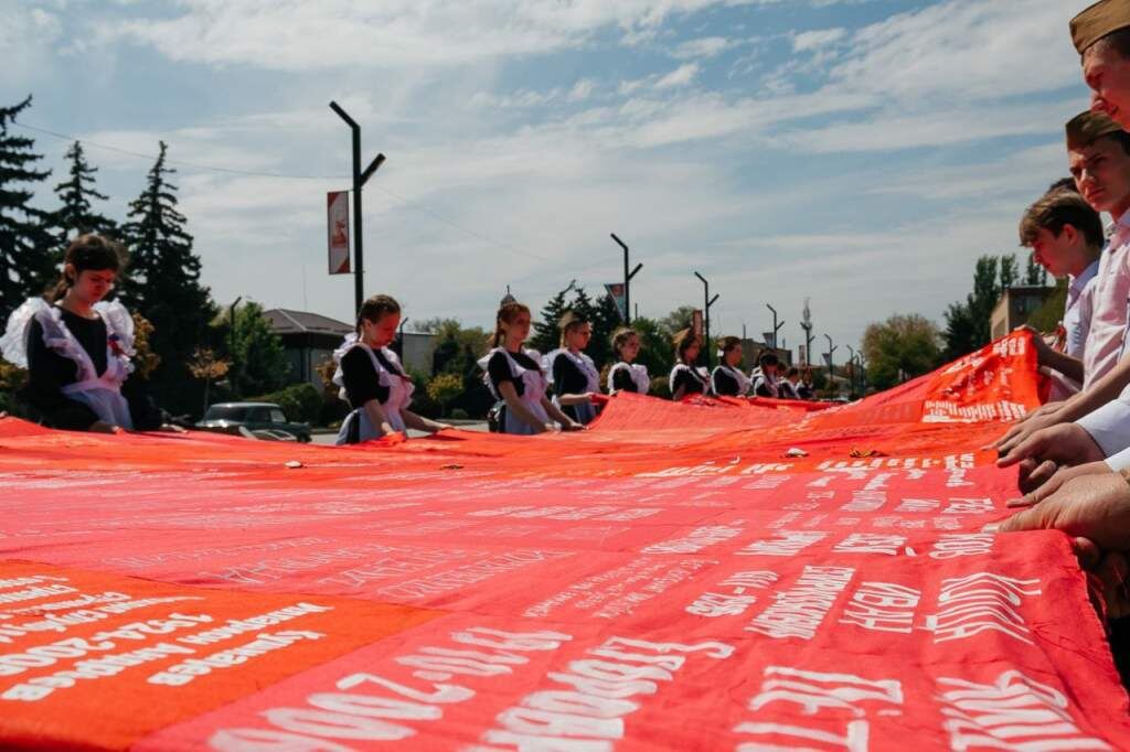 30 апреля — особенный день для нашей страны. В этот день 80 лет назад над Рейхстагом взвилось Знамя Победы. В Морозовском районе в этот день развернули Полотно Победы. Его создавали школьники, учителя, родители и все, кто хотел выразить благодарность ветеранам и поделиться историей своего родственника, участвовавшего в Великой Отечественной войне. Акция стартовала 13 марта по инициативе врио губернатора Ростовской области Юрия Слюсаря и активистов Движения первых. «Полотно Победы» — это способ отдать дань уважения подвигам наших предков и передать память о них будущим поколениям. Источник и фото: Движение Первых Морозовского района ЧИТАЙТЕ ТАКЖЕ: Полиция Морозовска ищет вандалов, разрушивших памятник ветерану