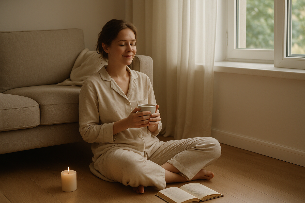 Утро. Тишина внутри — не тревога, а что-то похожее на свободу. Я проснулась просто так — не от маминого шёпота, не от внутренней тревоги. Позволила себе полежать, потянуться, послушать ветер за окном… И всё кажется новым, даже свет на стене какой-то особенный.