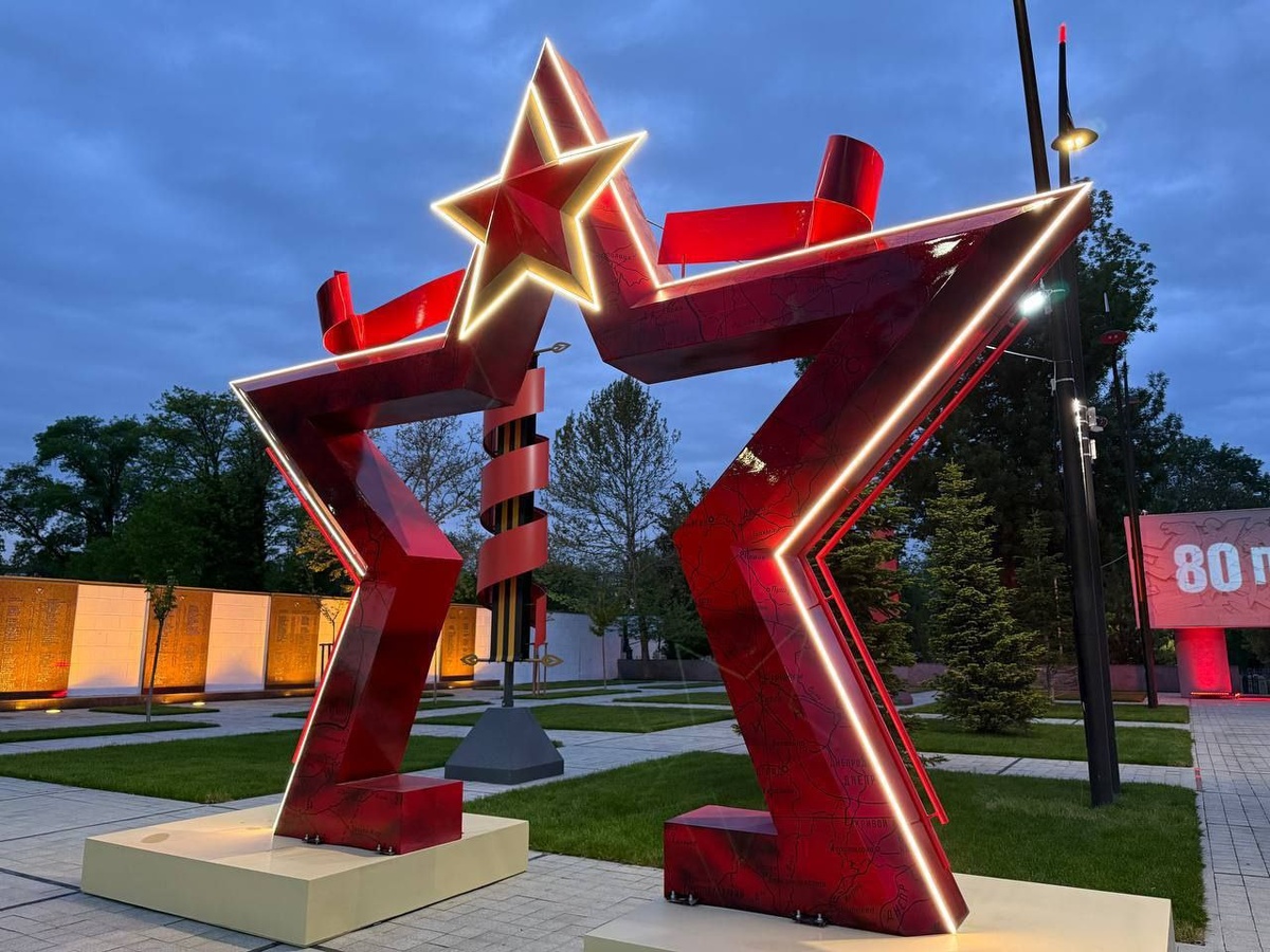 В честь 80-летия Победы на памятниках Краснодара зажгли праздничную подсветку