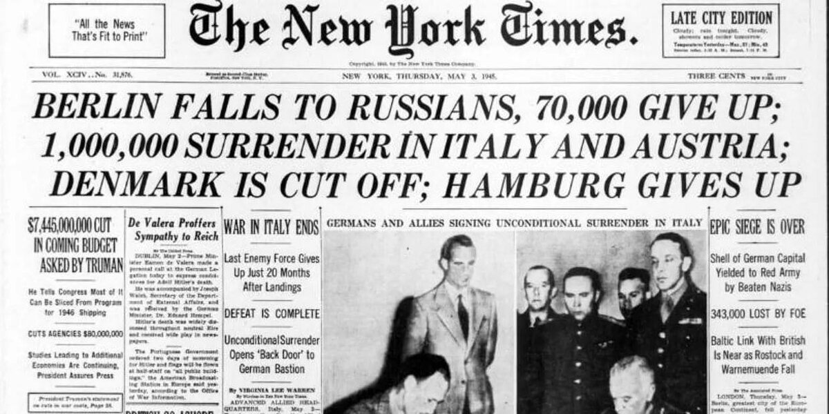 Москвичи ликовали от новости о взятии Берлина. А Гитлер покончил с собой Объявление Сталина о взятии Берлина положило начало беспрецедентному празднованию в Москве, рассказывает NYT от 3 мая 1945 года. По этому случаю был дан праздничный салют: 324 орудия произвели по двадцать четыре залпа. На улицах и площадях кричащие москвичи, обычно сдержанные даже при самых радостных новостях, подбрасывали в воздух шапки, а мощные синие прожекторы освещали величественные башни Кремля. Шеф немецкой пропаганды Йозеф Геббельс и Адольф Гитлер покончили жизнь самоубийством в Берлине. Об этом войска Красной армии узнали рано утром 3 мая — после того, как они заняли столицу рухнувшего Рейха. 👊 НАСОНОВ 🔴