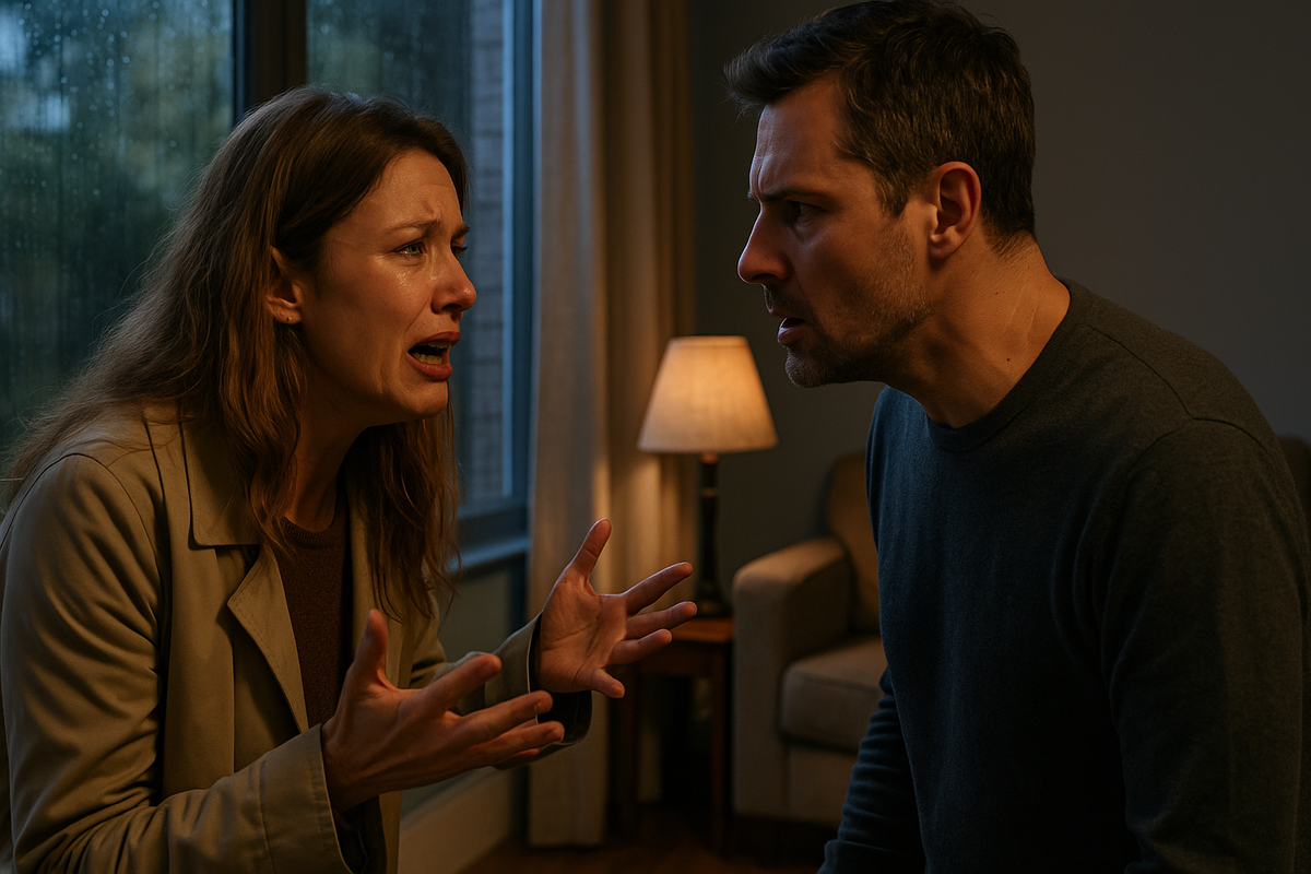 Виктор спустился со второго этажа, обнял её, но глаза его сказали больше: в них была вина и недосказанность.
