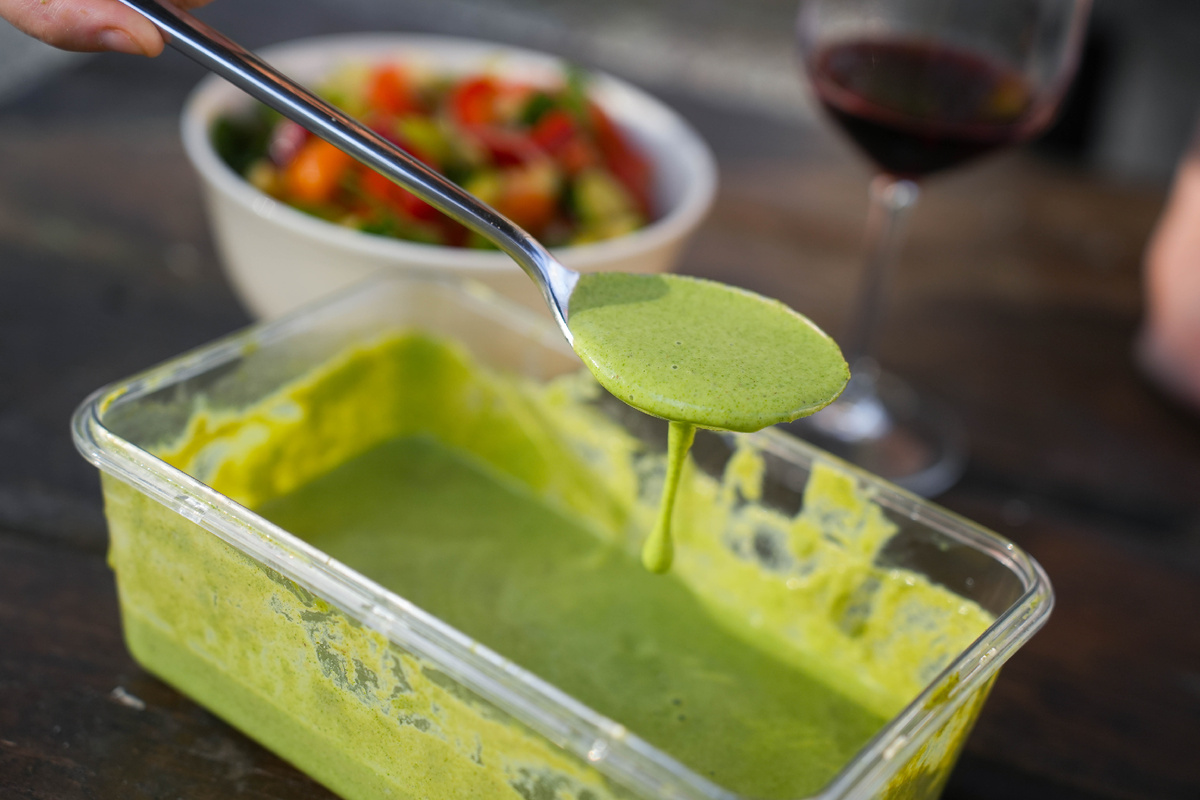 соль, перец, прованские травы по вкусу. Всё пробить блендером. Можно мариновать в таком соусе мясо для шашлыка. А можно в качестве соуса употребить. Для шаурмы, например. Для начинки беру 200 гр сныти, тёртый российский сыр 100 гр, чеснок 1 зубчик, молотый перец. Тесто для вареников: 200 гр муки на 100 мл воды, 1 яйцо, щепотка соли, 1 ст.л. растительного масла. Если тесто выходит слишком жидким, можно подсыпать 100 гр муки. Лепить и варить как обычные вареники. На второй день из этого же теста и с той же начинкой Глеб (сыночек мой, 12 лет ему) приготовил не то кутабы, не то чебуреки. По технологии приготовлени