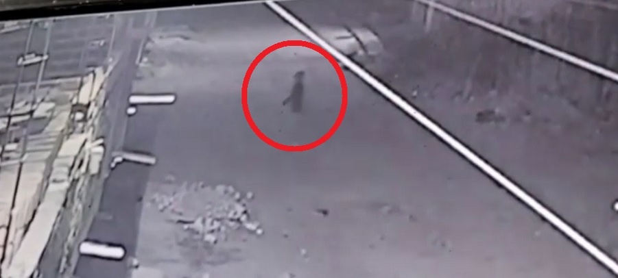 На кадрах видно, как две размытые, неестественно тёмные фигуры одна за другой переходят дорогу.