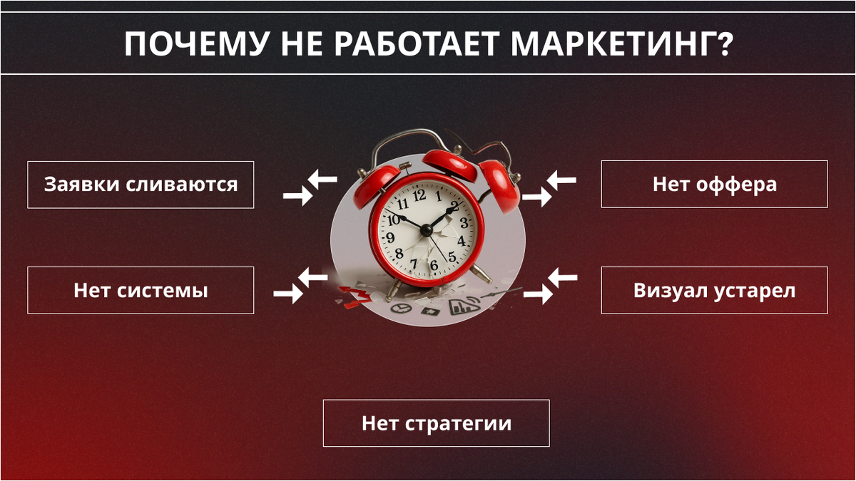 Многие предприниматели сталкиваются с ситуацией, когда реклама настроена, бюджеты тратятся, специалисты работают — а заявок нет. Возникает логичный вопрос: почему маркетинг не даёт результата? Важно понимать: отсутствие выхлопа — не следствие "плохой рекламы", а сигнал, что в системе есть сбой. В этой статье мы разберём ключевые ошибки, из-за которых маркетинг не работает, и подскажем, как их устранить. Основные ошибки в стратегии и запуске рекламы 1. Отсутствие маркетинговой стратегии Одна из самых распространённых ошибок — запуск рекламы без чёткого понимания целей и структуры воронки. Многие начинают с запуска таргетированной рекламы, не определив УТП, не описав путь клиента и не зная, кого именно они хотят привлечь. Что происходит: реклама работает, но не на тех, не с тем и не туда. Решение: 2. Непроработанный оффер "Профессионализм", "опыт", "индивидуальный подход" — это не оффер, а фоновые заявления, которые никак не выделяют компанию. Если оффер не отвечает на вопрос "Зачем