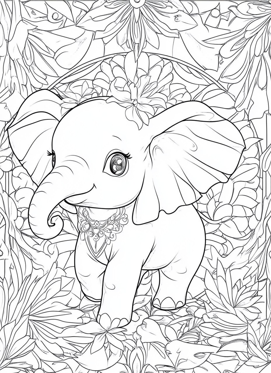 Создано на основе запроса: elephant coloring page, mandala pattern background