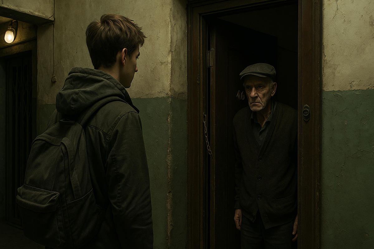 Подъезд был старым. Тусклый свет лампы, облупленная стена, лифт, который вечно стоял. И четвёртый этаж, на который Никита ходил пешком, скрипя кроссовками по бетонным ступеням. Пахло старой тряпкой, мокрым кирпичом и чужими жизнями. Он не собирался ни с кем знакомиться. Просто выполнял волонтёрскую норму: «помощь пожилым» — список был на школьном стенде. В пятницу — принести продукты. В воскресенье — вынести мусор. Пара визитов — и галочка в дневнике. Ничего личного. — Квартира 46. Старик. Фронтовик. Не подходи слишком близко — ругается, — сказала куратор, протягивая ему клочок бумаги. Никита позвонил в дверь и тут же отскочил. Скрип. Шаги. Цепочка. Потом — один глаз, мутноватый, как затянутое небо. — Чего надо? — Продукты... волонтёр. От школы. — Закрой дверь и катись обратно, откуда пришёл. — Я просто поставлю у двери… — Ты что, глухой? Я сказал: не надо мне ничего. И дверь захлопнулась. Никита постоял ещё минуту. Поставил пакет у двери. Повернулся. Ушёл. На лестнице пахло не просто