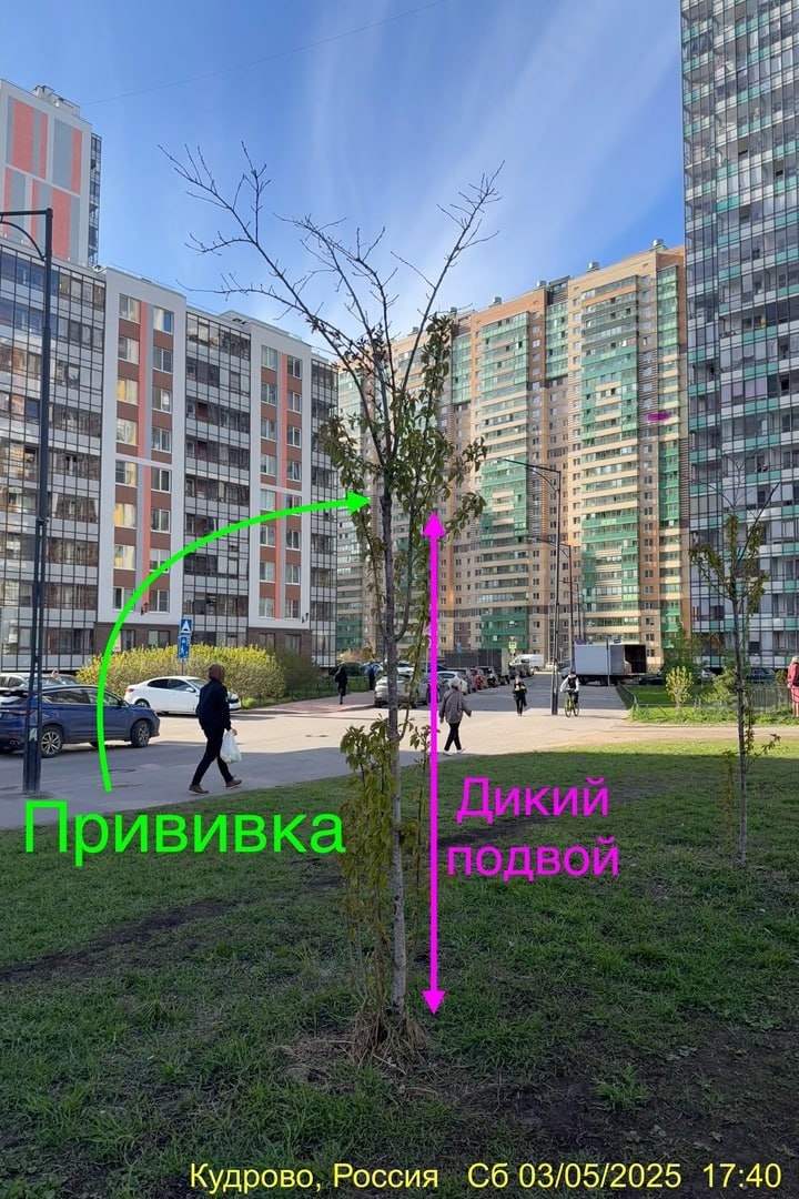 Весна 2025: 945 тысяч бюджетных рублей ушли в никуда. Почти все сакуры, высаженные Заневкой в 2022 году, выродились — ухода за ними не было вообще. vk.com/wall-51766355_2917708 Что с гарантийным сроком, когда он заканчивается и что включает — непонятно. Но факт остаётся фактом: это были привитые деревья, и декоративная часть (верхушка) либо погибла, либо на грани. Зато подвои — дикие — пошли в рост и теперь захватывают всё растение. Крона не сформирована, от сакуры осталось только название. Так что прежде чем обещать высадить +100500 новых деревьев, неплохо бы привести в порядок уже посаженные. Если текущие насаждения — непосильная задача, зачем увеличивать нагрузку на садово-парковое хозяйство? Алексей Афанасович 🌇 Жизнь в Кудрово