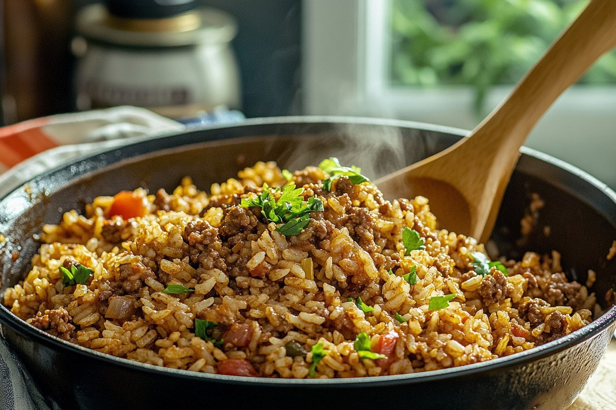 Создано на основе запроса: | Title: Dirty Rice with Ground Beef | STYLE: Close-up Shot right view | EMOTION: realistic as possible | SCENE
