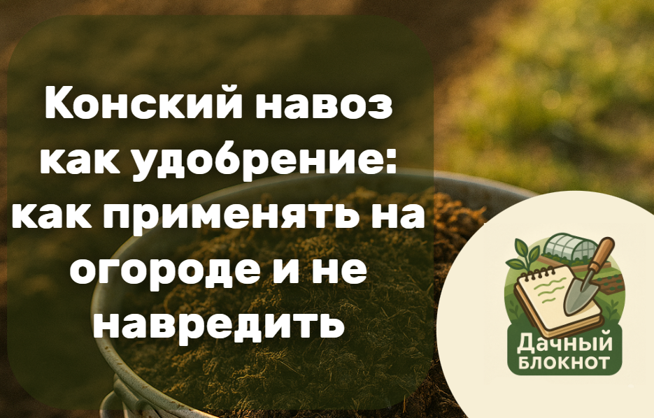 Конский навоз — один из самых ценных и безопасных видов органики для дачного участка. Он помогает восстановить плодородие, улучшает структуру почвы и питает растения на протяжении всего сезона. В статье расскажем, как применять конский навоз как удобрение весной, в чём его польза, чем он лучше других видов и что думают садоводы по этому поводу. 📌 Особенно хорош для тяжёлых и кислых почв. Конский перегной как удобрение весной применяется так: Альтернативы: - куриный помёт (в разведении), - компост, - биогумус, - покупной перегной в мешках. 📌 Увеличивает универсальность статьи — полезна даже тем, у кого нет доступа к навозу. Как применять конский навоз весной? Только в перепревшем виде: при перекопке, в лунки, для мульчи или настоем для полива. Можно ли использовать свежий конский навоз? Свежий навоз используют осенью или в теплых грядках и компосте, но не под корень. Как сделать удобрение из конского навоза? Настой: 1 кг навоза + 10 л воды, настаивать 3–5 дней. Использовать для полива