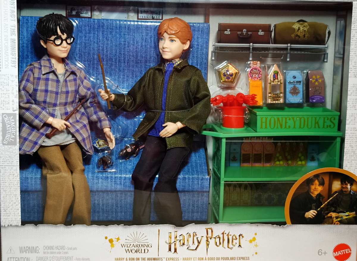 Продолжаю распаковывать подарочки по случаю моего дня рождения. Сегодня хочу показать набор кукол, о котором мечтала очень давно. Перед вами Гарри и Рон в поезде "Хогвартс-экспресс": Этих героев подарила мне моя замечательная сестра, которая уже не единожды баловала меня подарками, связанными с любимыми персонажами детства. Мне настолько понравились картонные "декорации" (диван и фон) в коробке, что я решила их сохранить для дальнейших фотосессий. Данный набор был выпущен компанией Mattel в 2023 году и содержит более 10 аксессуаров для воссоздания сцен из книг и фильмов, хотя за основу взяты события из первой части приключений Гарри Поттера и его друзей. Куклы похожи на актёров, наделены 11 точками артикуляции и одеждой, состоящей из отдельных элементов, что очень важно! К сожалению, такой "роскошью" Сириус Блэк был обделён. Мальчишки направляются в Хогвартс, а в пути решили продегустировать сладости волшебного мира. Рон держит в руке шоколадную лягушку — популярное лакомство в ми